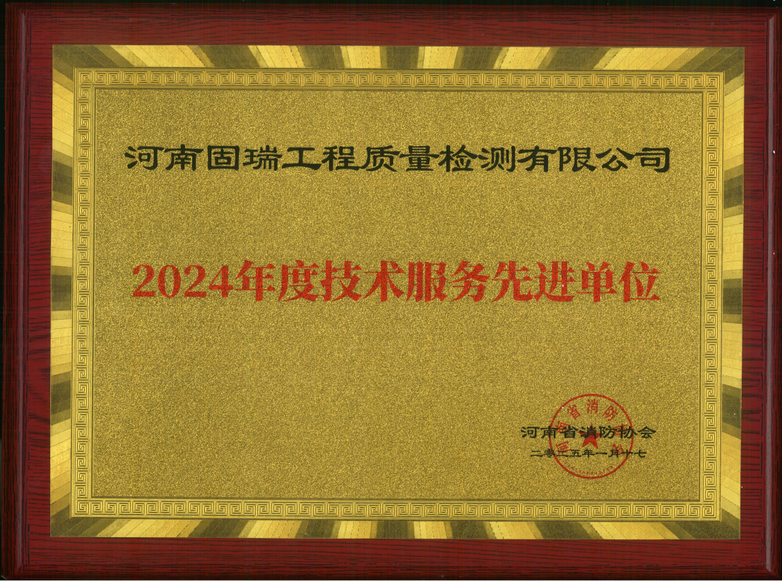 熱烈祝賀河南固瑞工程質(zhì)量檢測有限公司榮獲河南省消防協(xié)會2024年度技術服務先進單位?。。?