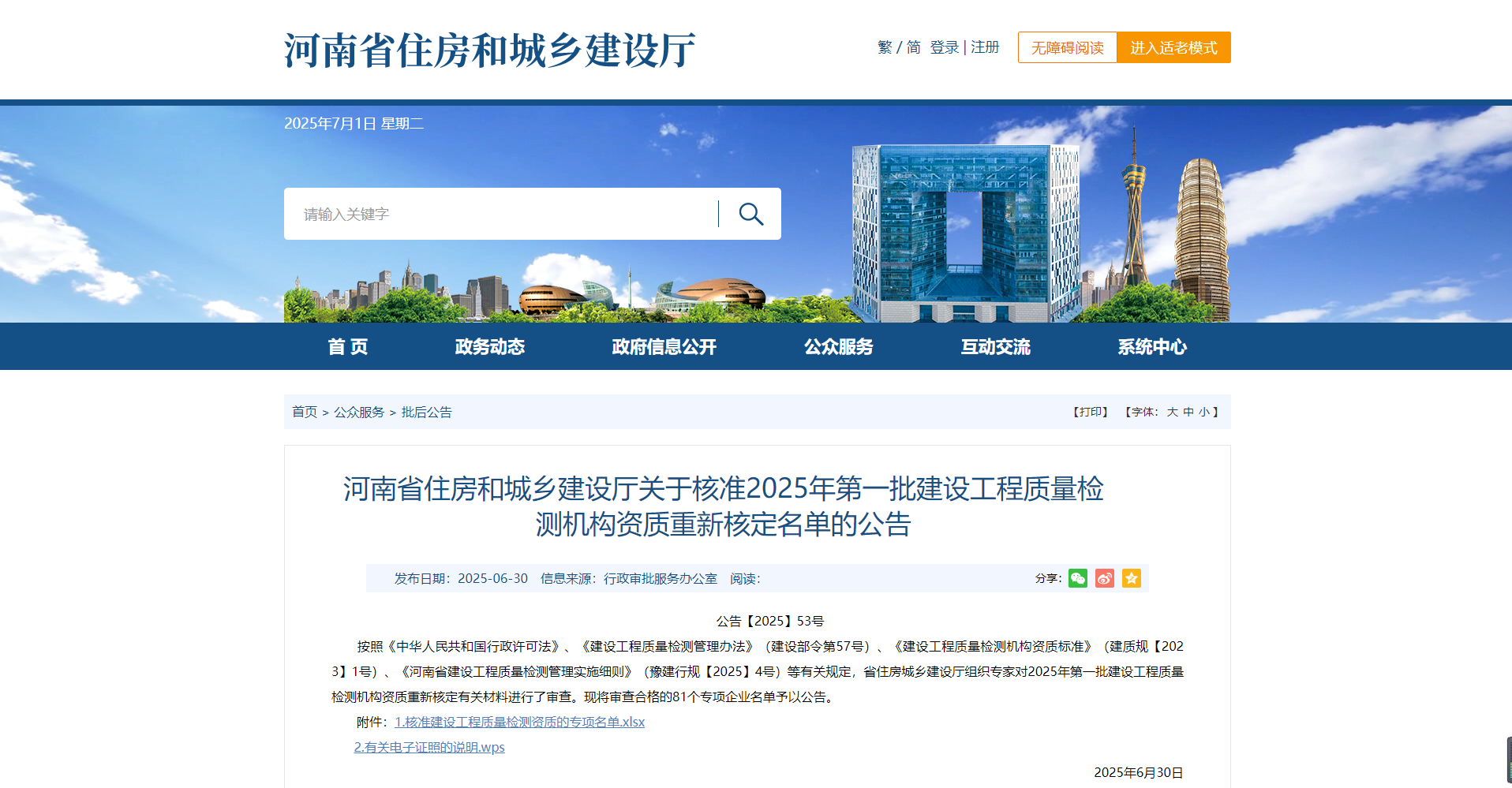 熱烈祝賀我司通過河南省住建廳2025年第一批建設工程質(zhì)量檢測機構資質(zhì)重新核定?。?!